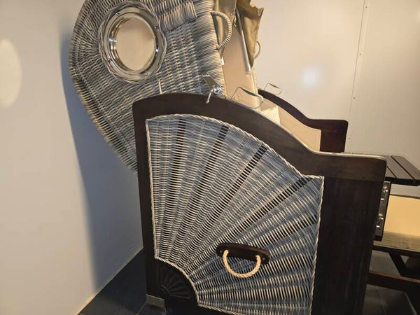 Mit seiner Kombination aus robustem Mahagoni-Holz Braun lasiert und witterungsbeständigem 6 mm Voll-PE-Geflecht in edlem White Kubu zieht dieser Strandkorb regelmäßig Blicke auf sich. Die Beschläge aus Edelstahl und Aluminium-Bullaugen setzen hochwertige Akzente und zeugen von sorgfältiger Handarbeit und hochwertiger Verarbeitung.