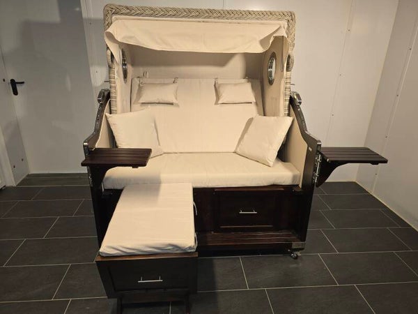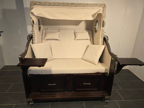 Der Strandkorb Pelikan XL Mahagoni Braun ist Ihr perfekter Ort zur Entspannung im Garten, auf der Terrasse oder im Indoorbereich.