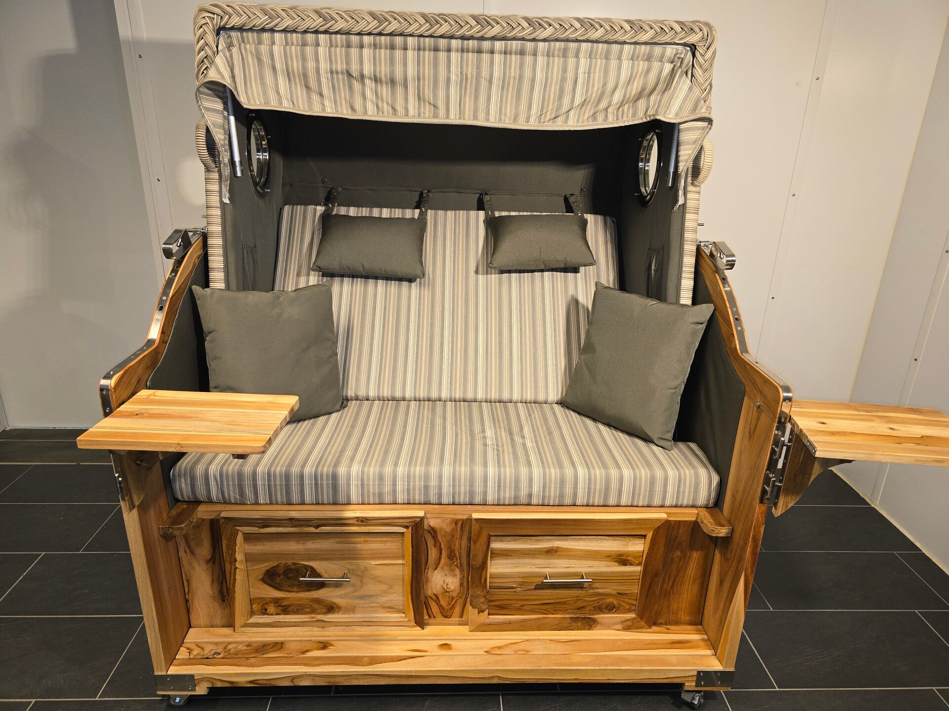 Der Strandkorb Pelikan XL Teakholz ist Ihr perfekter Ort zur Entspannung im Garten, auf der Terrasse oder im Indoorbereich.