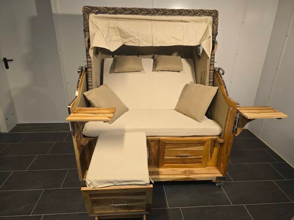 Der Strandkorb Pelikan XL Teakholz ist Ihr perfekter Ort zur Entspannung im Garten, auf der Terrasse oder im Indoorbereich.